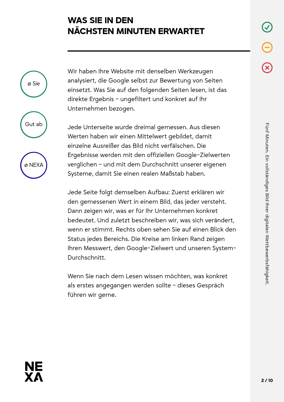 Kein Marketing-Screenshot. Testen Sie NEXA.SYSTEMS jetzt selbst und vergleichen Sie das Ergebnis mit Ihrer aktuellen Webseite. Wir haben nichts zu verstecken.